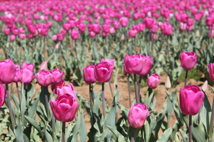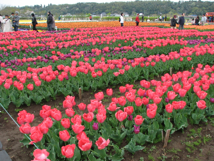 佐倉ふるさと広場が会場のチューリップ祭りです。 お祭り1週間前にもかかわらず、たくさんの見物客です。 ただ、あいにくのお天気でした。