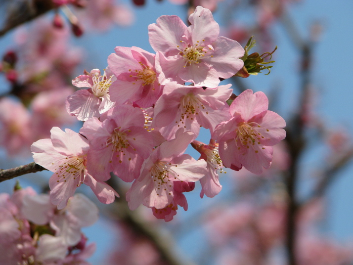 海岸通り沿いの河津桜が開花し、観光客の眼を楽しませてくれます。