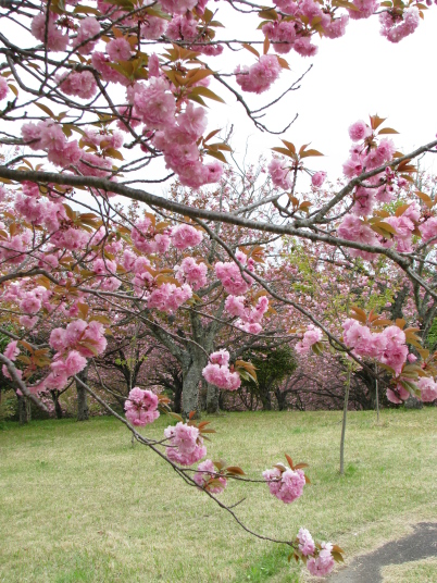 2千本以上の八重桜が咲き乱れ山一面を覆っていました。