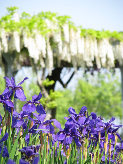 6月になると、約150万本のハナショウブが出迎えてくれます、 この日はアヤメが満開でした。また、藤の花も咲いていました。