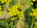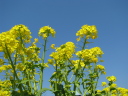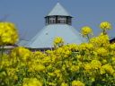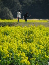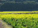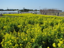 道の駅の駐車場の裏に一面の菜の花畑が広がります。