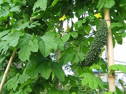 8/13 緑のゴーヤは収穫ラッシュ。 白ゴーヤも2つほど、 なってきました。 |