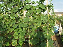 6/19 支柱の先端まできたと同時に 下葉も枯れ始めてきました。 収穫もそろそろ終わりです。 |